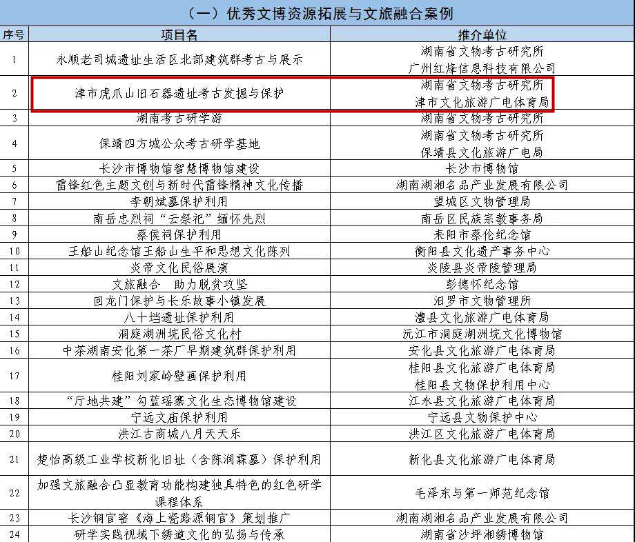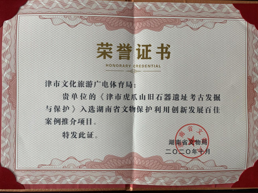 日前,笔者从湖南(金秋)文物博览会上获悉:津市虎爪山旧石器遗址考古发掘与保护项目,获选《湖南文物保护利用创新发展百佳案例》优秀文博资源拓展与文旅融合案例。